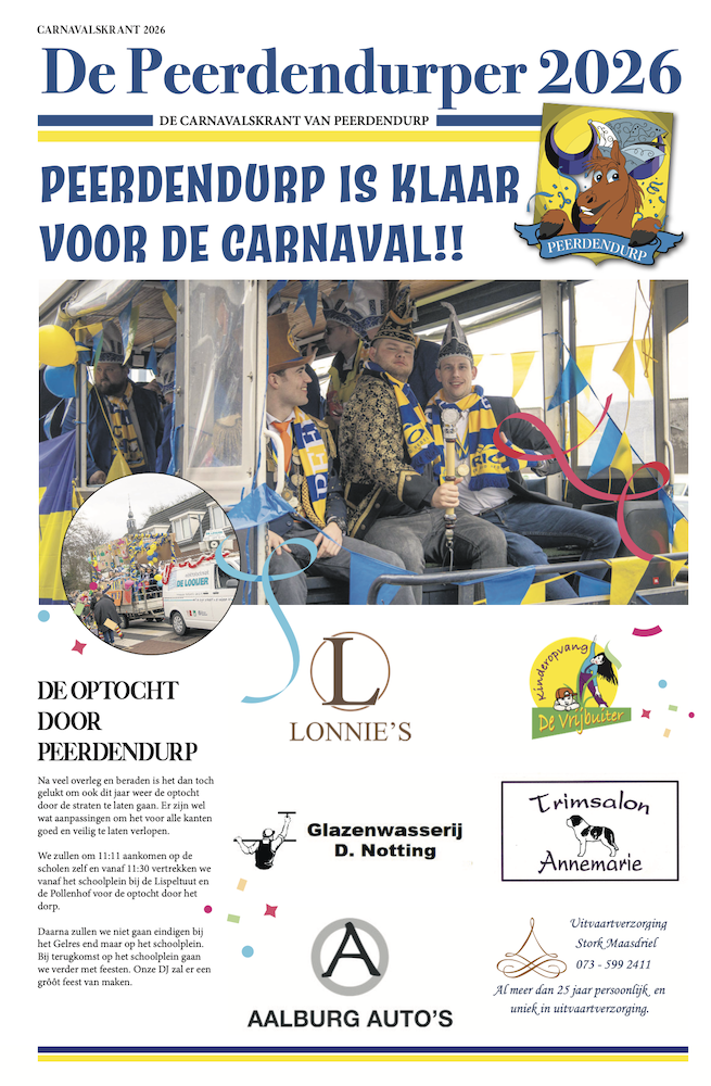 - Organiseren van het eerste Prinsenbal van Peerdendurp op 24 januari 2026